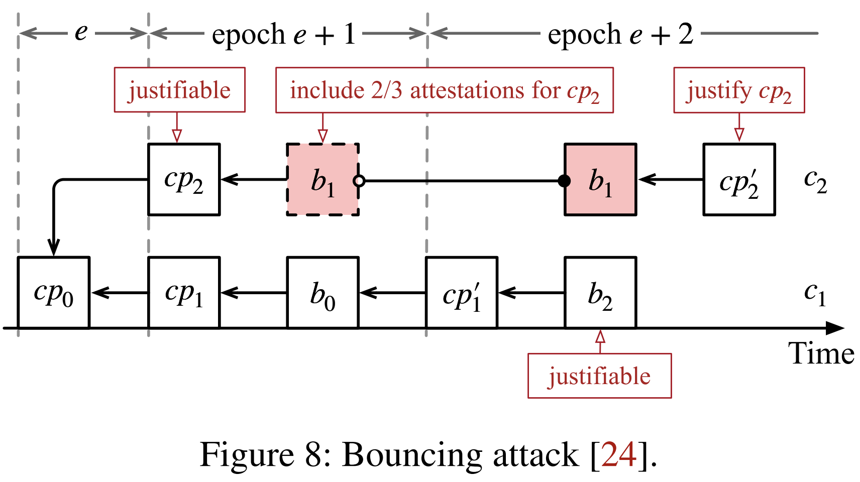 - The attacker can repeatedly make the last Justified Checkpoint switch between two chains,